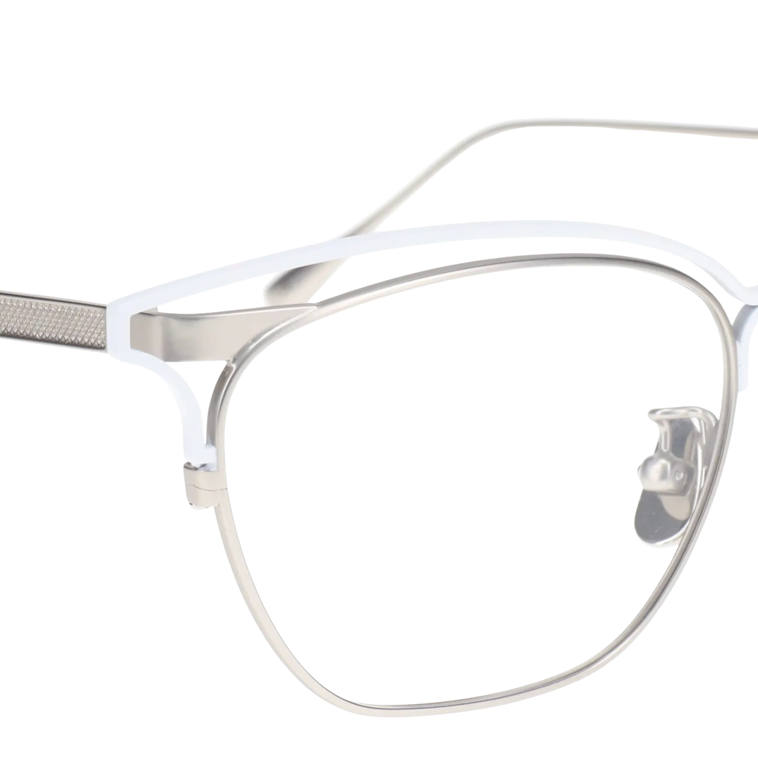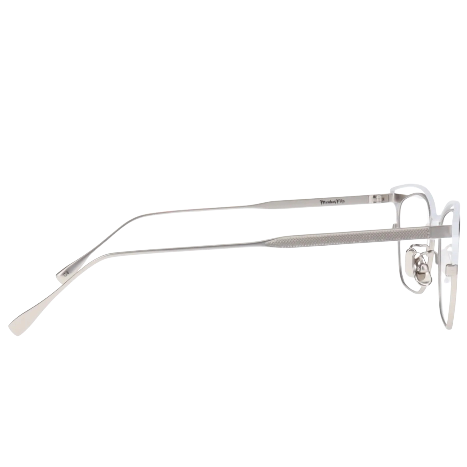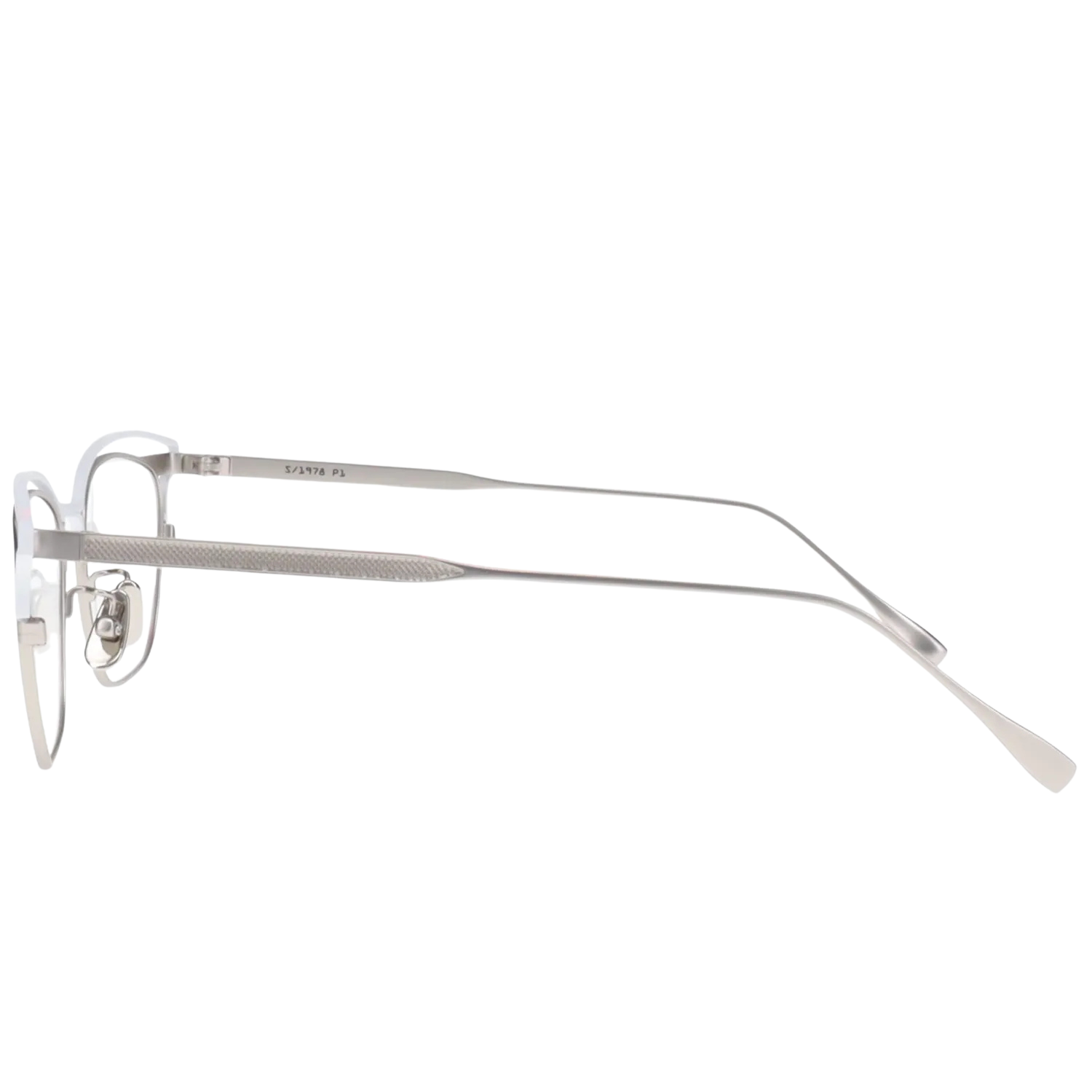 「Charon」のカラーリング「マットシルバー×マットホワイト」は、冥王星とカロンの氷に覆われた表面を彷彿とさせる、宇宙的な美しさを表現しています。マット仕上げによる上品な質感は、メタルフレームの持つクールな印象を和らげ、温かみのある表情を生み出します。