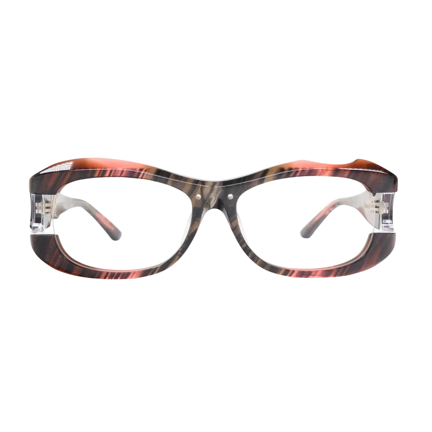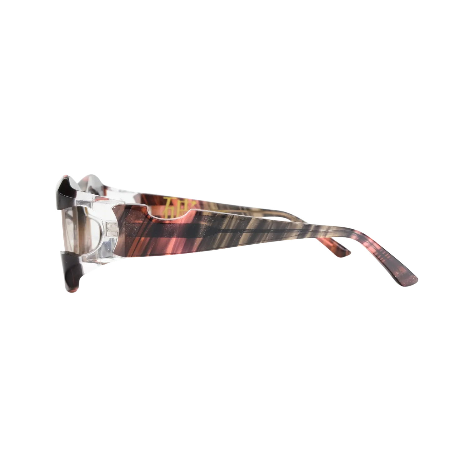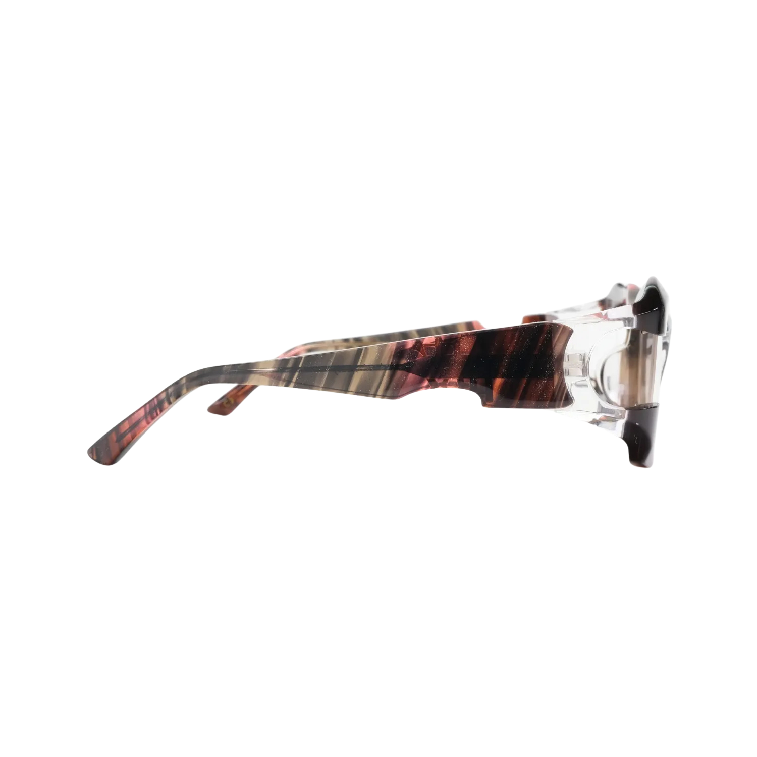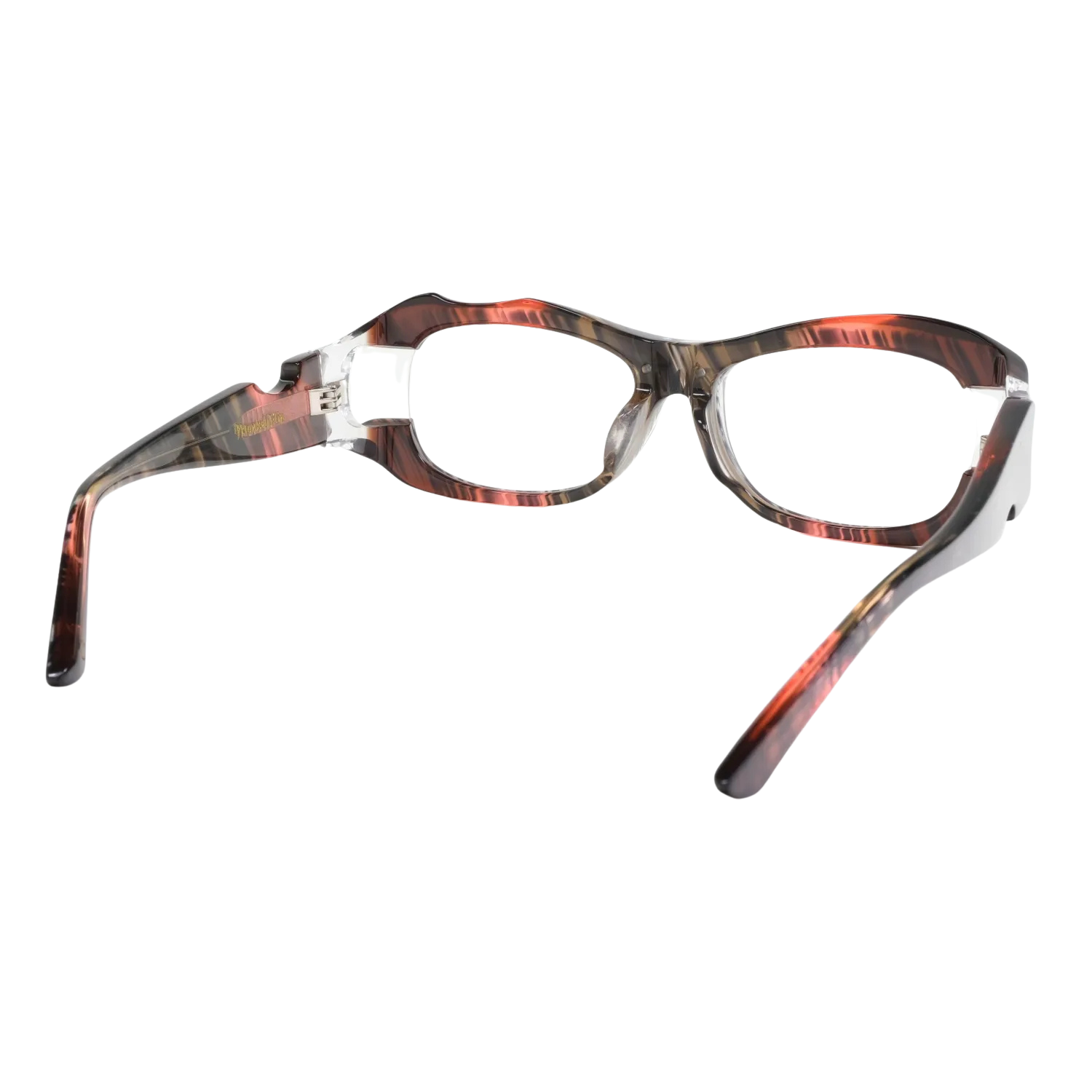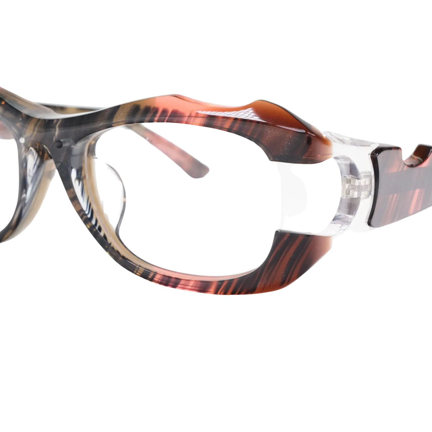 このボリューム感と意図的な欠損の組み合わせは、従来のアイウェアデザインでは見られない独特な存在感を生み出しています。重厚でありながら軽快、攻撃的でありながら洗練されている。この相反する要素の絶妙なバランスこそ、MonkeyFlipだからこそ実現できた技術の結晶です。