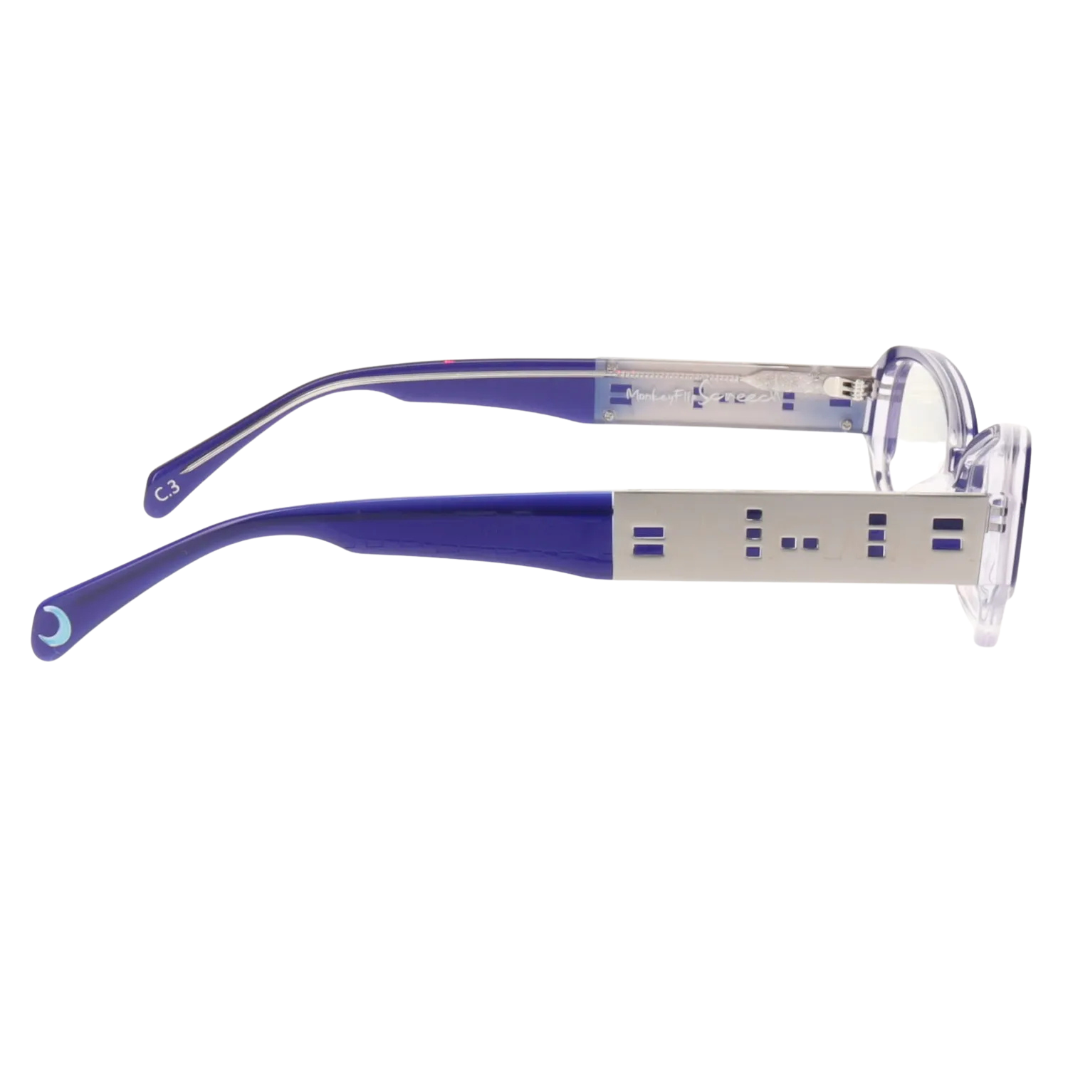 晴れた日の夜景を閉じ込めた特別なアイウェアです。近年珍しい細身のスクエアタイプに懐かしさを感じさせながら、窓からこぼれる灯りをテンプルに表現し、先セルには月をアクセントに配した、都会の夜景をデザインテーマとした美しい一本となっています。