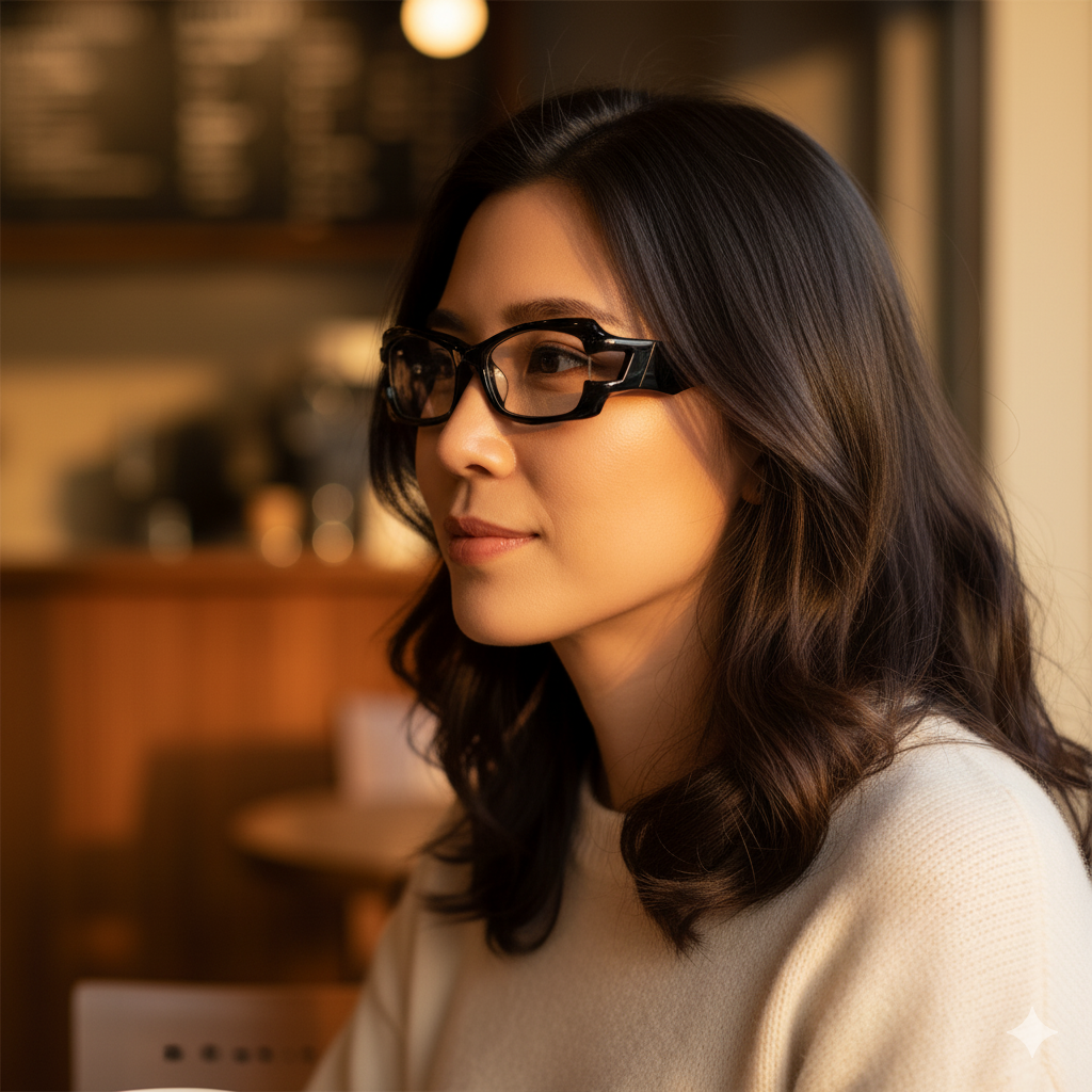 伝統的なゴーグル型の良さを継承しながら、現代的な技術と革新的なデザインを融合。「今日なんかイメージ違うね、かっこいいよね」と言われる、まさに印象を作るメガネとして完成しました。