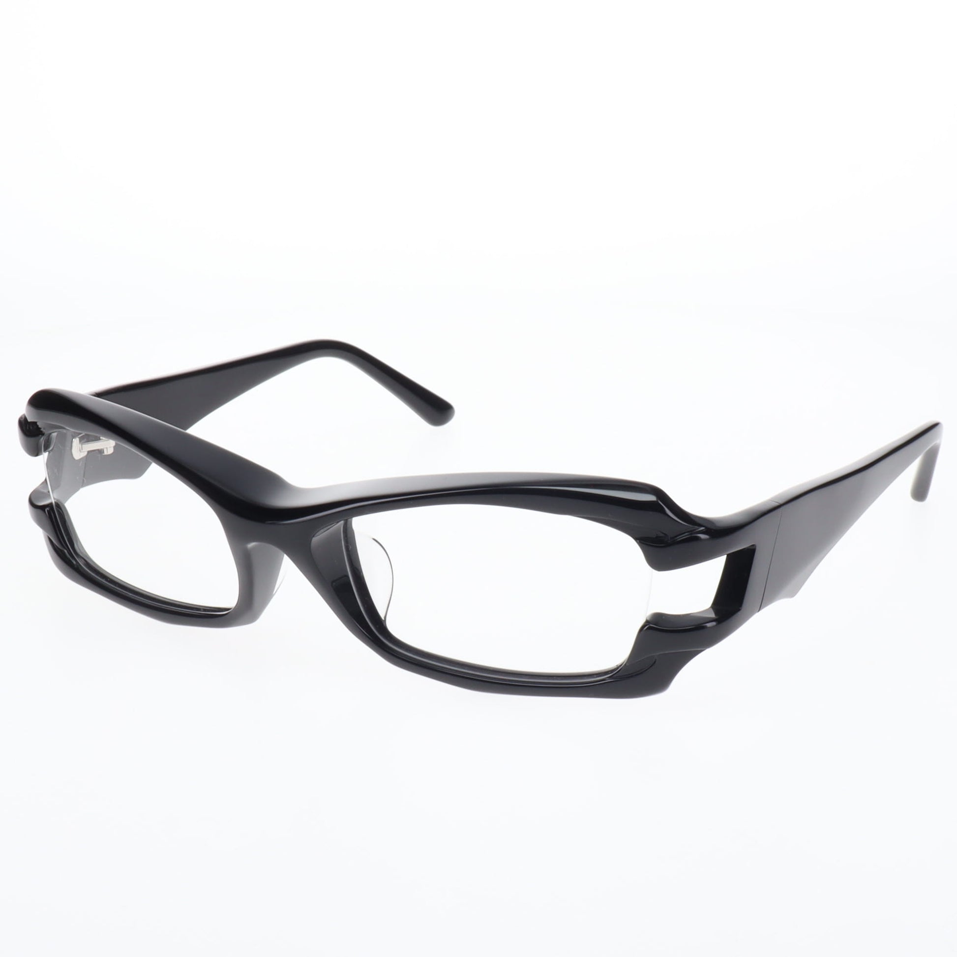 「酒吞」は左右対称のシンメトリーデザイン。初めてボリュームラインに挑戦する方でも安心してかけていただける、王道の美しさを持っています。攻撃的でありながら安定感があり、スーツスタイルからカジュアルまで幅広く対応します。