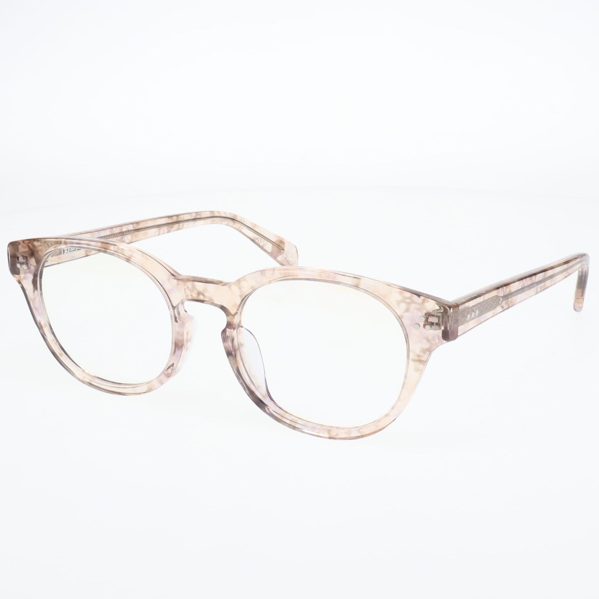 従来のフレーム全体がキラキラしているラメ入りアセテート生地では、時として派手になりすぎる傾向がありました。しかし「糖」では、パーツとして戦略的にラメを配置することで、上品な輝きと実用性の完璧なバランスを実現しています。光の当たり方によって表情を変える魅力的な仕上がりは、まるで朝日に照らされた角砂糖のように、繊細で美しい輝きを放ちます。