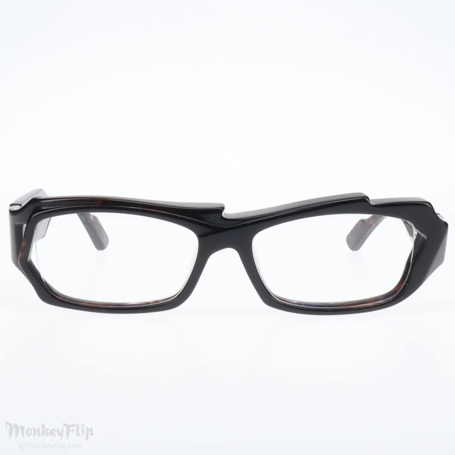 「耶馬」―その名前が示す通り、まるで断崖絶壁のような大胆で険しい造形美を表現したモデル。一瞬で視線を釘付けにする波打つフロントデザインは、MonkeyFlipの創造性の結晶です。このユニークな波形状は、単なる装飾ではなく、光の反射と陰影を計算し尽くして設計されており、着用者の表情に深みと立体感を与えます。