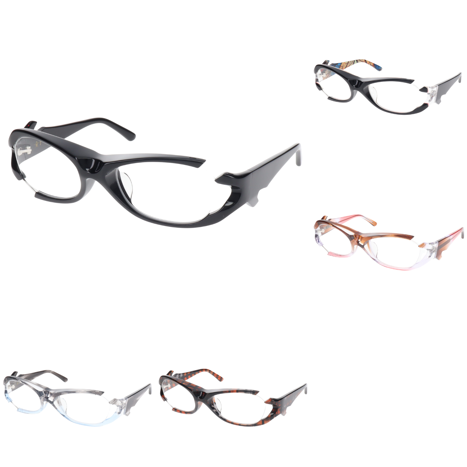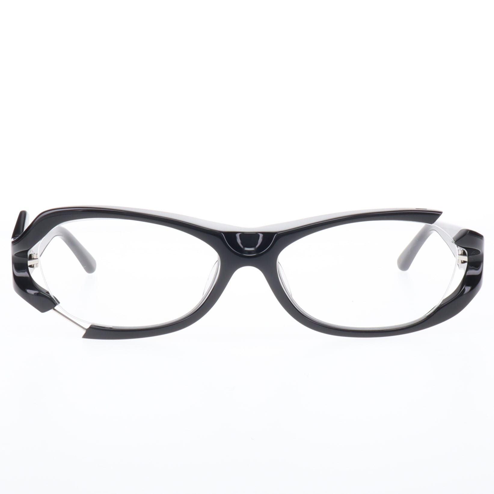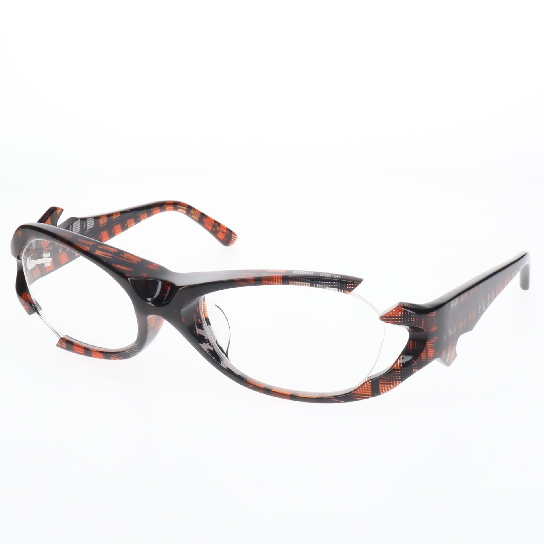 一見すると攻撃的なデザインですが、ベースとなる「玉型(レンズシェイプ)」は、デザイナー岸正龍が長年のキャリアで導き出した「日本人の骨格に最も馴染む黄金比」を採用しています。 異形でありながら、掛けた瞬間に顔の一部となる。そのギャップこそが、大人の余裕を演出します。
