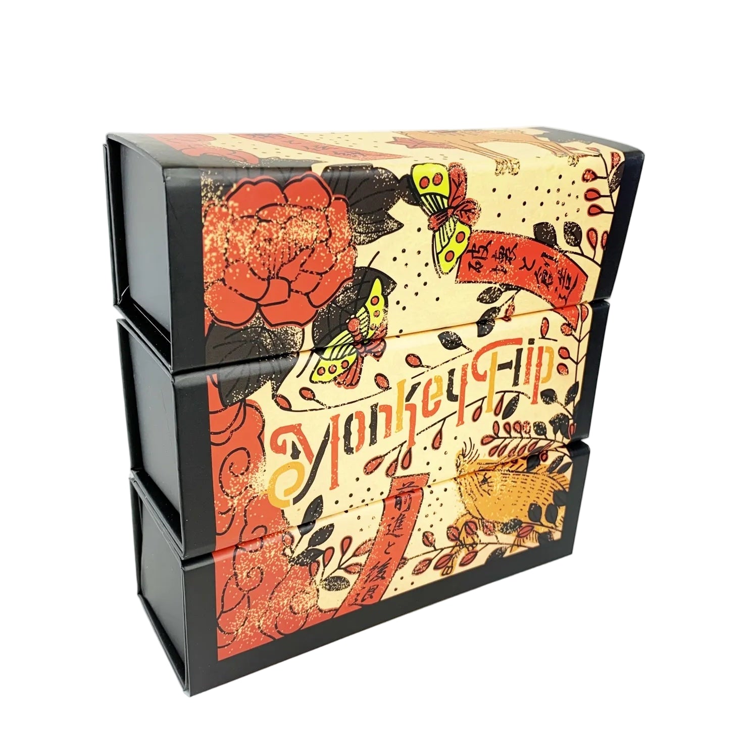 2019年、亥年。描かれた猪は、迷わず突き進む「猪突猛進」の精神と、日本伝統の和柄が交差する瞬間を切り取っています。 牡丹や蝶が織りなす華やかな色彩は、日常に小さな覚悟と彩りを与えます。