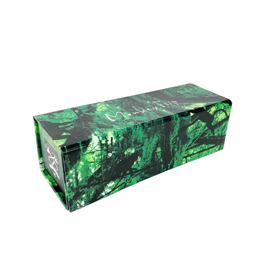 MonkeyFlipが描いたのは、写実的な森ではありません。光と影、鮮烈なグリーンと深い黒のコントラストで表現された「森の本質」。 このケースは、眼鏡を収納する「容器」である前に、森というエネルギーを携帯するアート作品として存在しています。