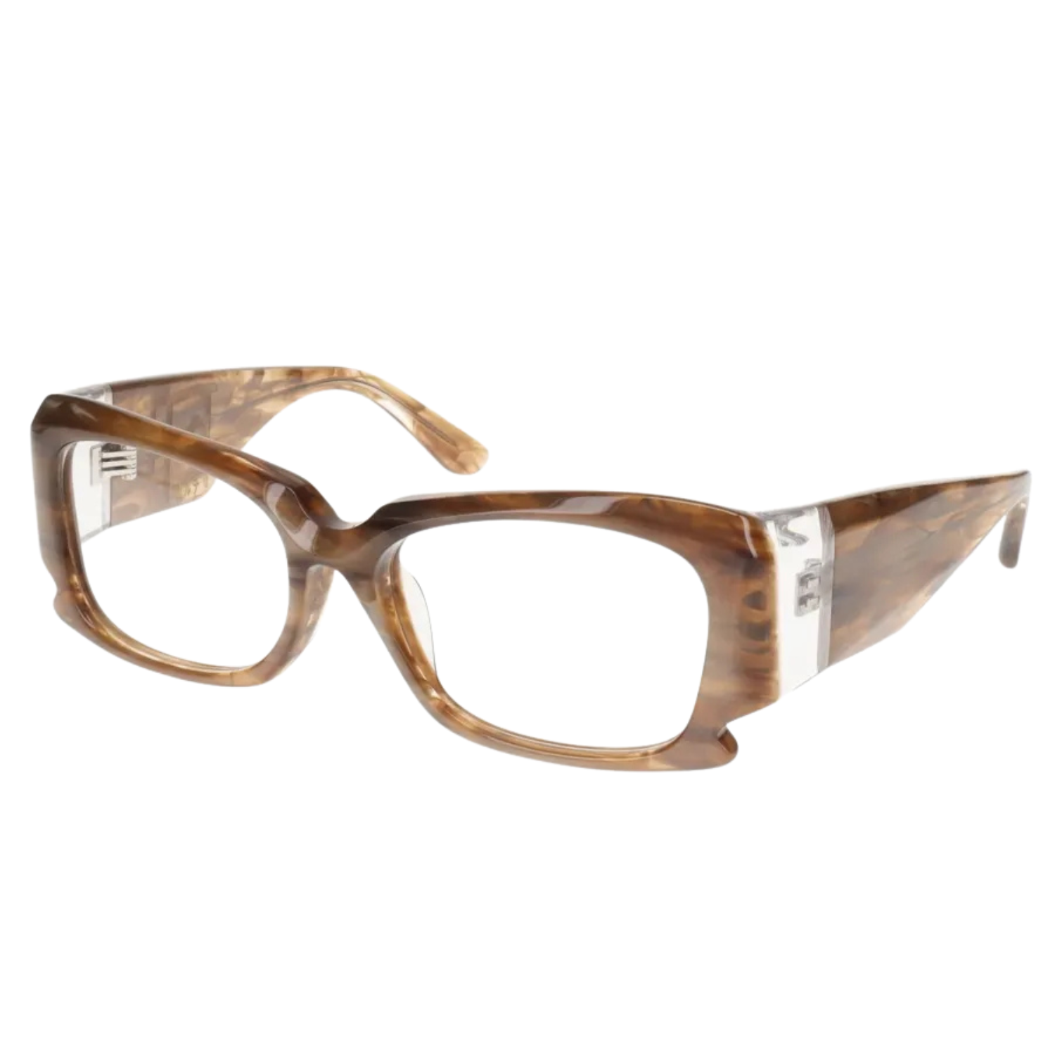 「ハルチ」の最大の特徴は、天地幅の広いボリューム感とテンプル幅の圧倒的な太さです。この大胆なサイジングは、着用者に他では味わえない強烈な存在感をもたらし、周囲に強いインパクトを与えます。