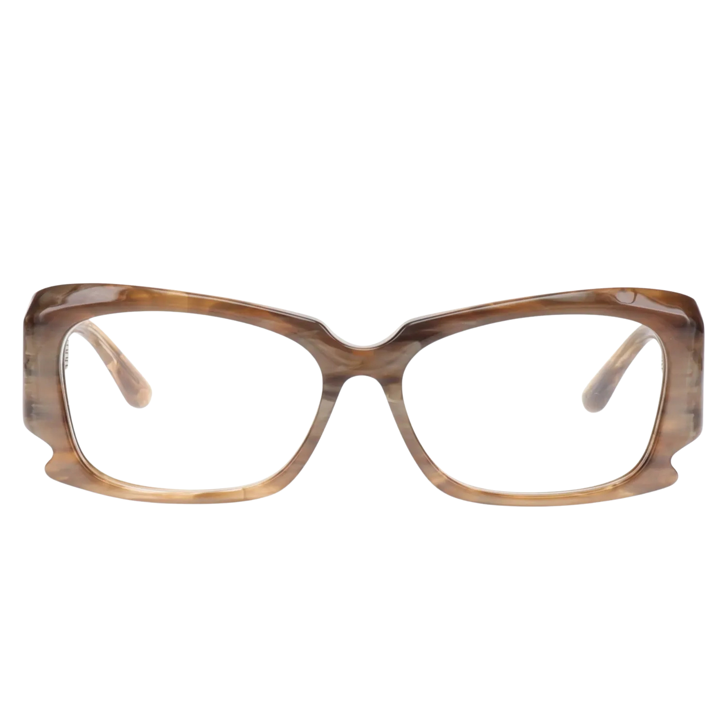 天地幅の広いボリューム感とテンプル幅の圧倒的な太さが魅力的なアイウェアです。一見すると大ぶりなモデルでありながら、フロント下部の抉りや所々に効かされた細かなエッジなど、精密な技術が込められた飽きのこない一本となっています。
