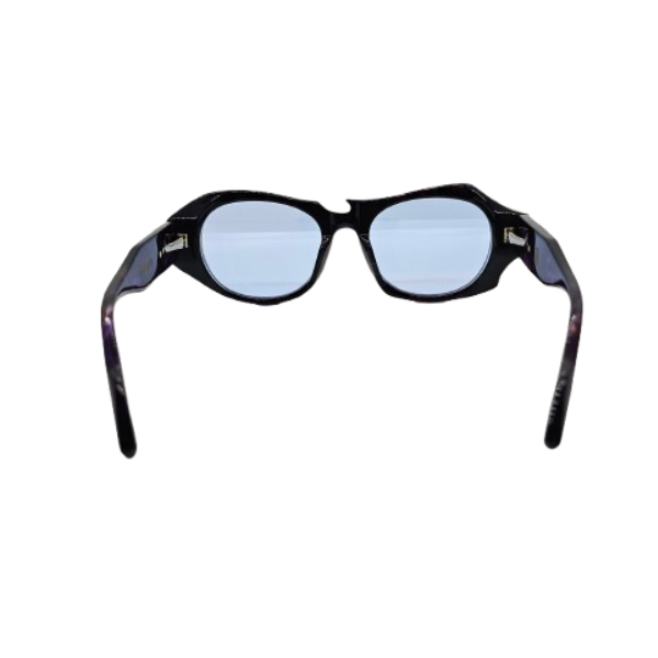 すべてのデザイン要素が計算し尽くされており、一見不規則に見える非対称性も、実はサングラスとして精密な設計に基づいています。左右の異なるデザインが、サングラス着用時に絶妙なバランスを保ち、顔の輪郭を美しく演出するよう設計されています。