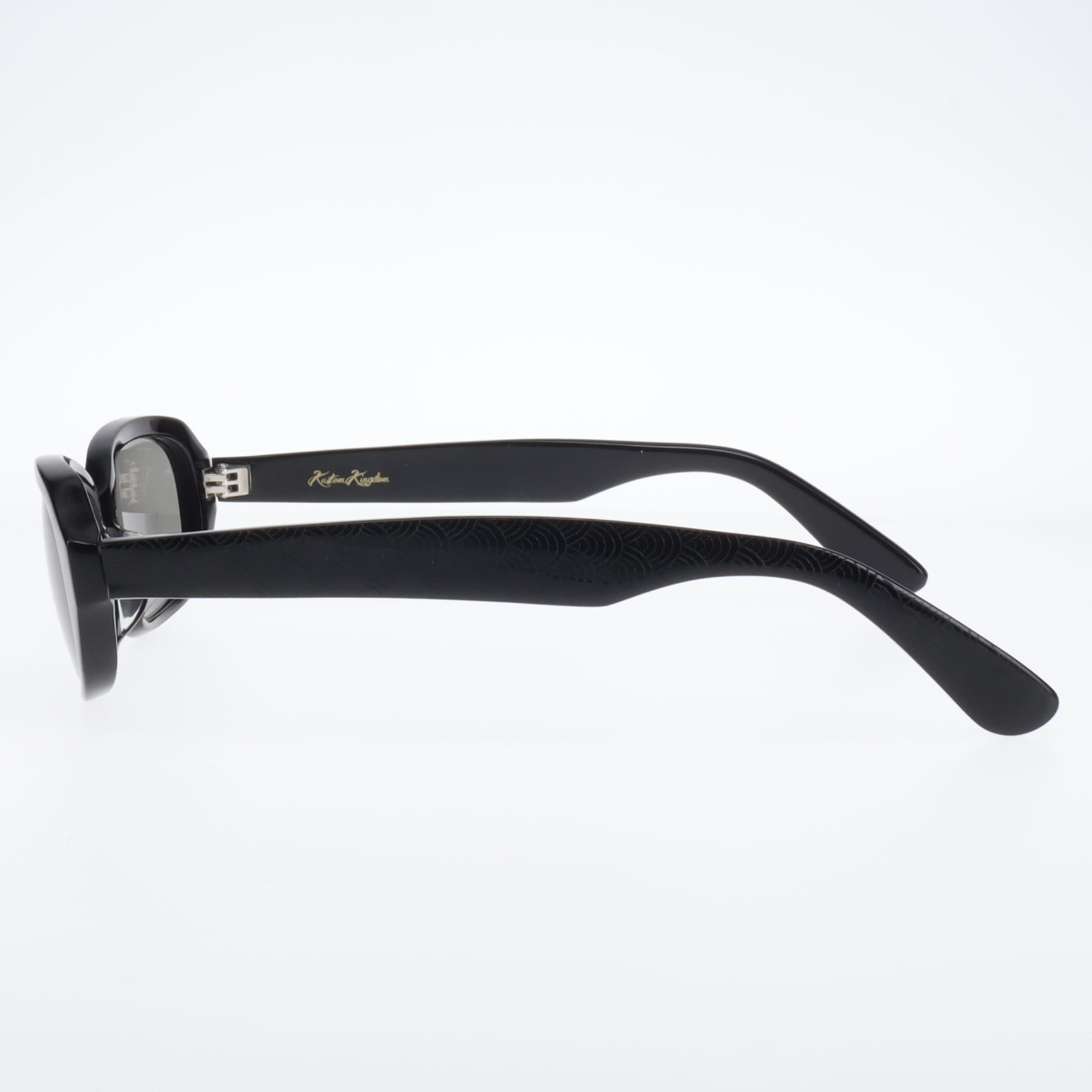 「KK-144」の魅力は、さりげない個性の演出にあります。一見シンプルなサングラスに見えながら、近くで見ると繊細な水面模様が施されているという、控えめながらも確かな存在感を放つデザインです。