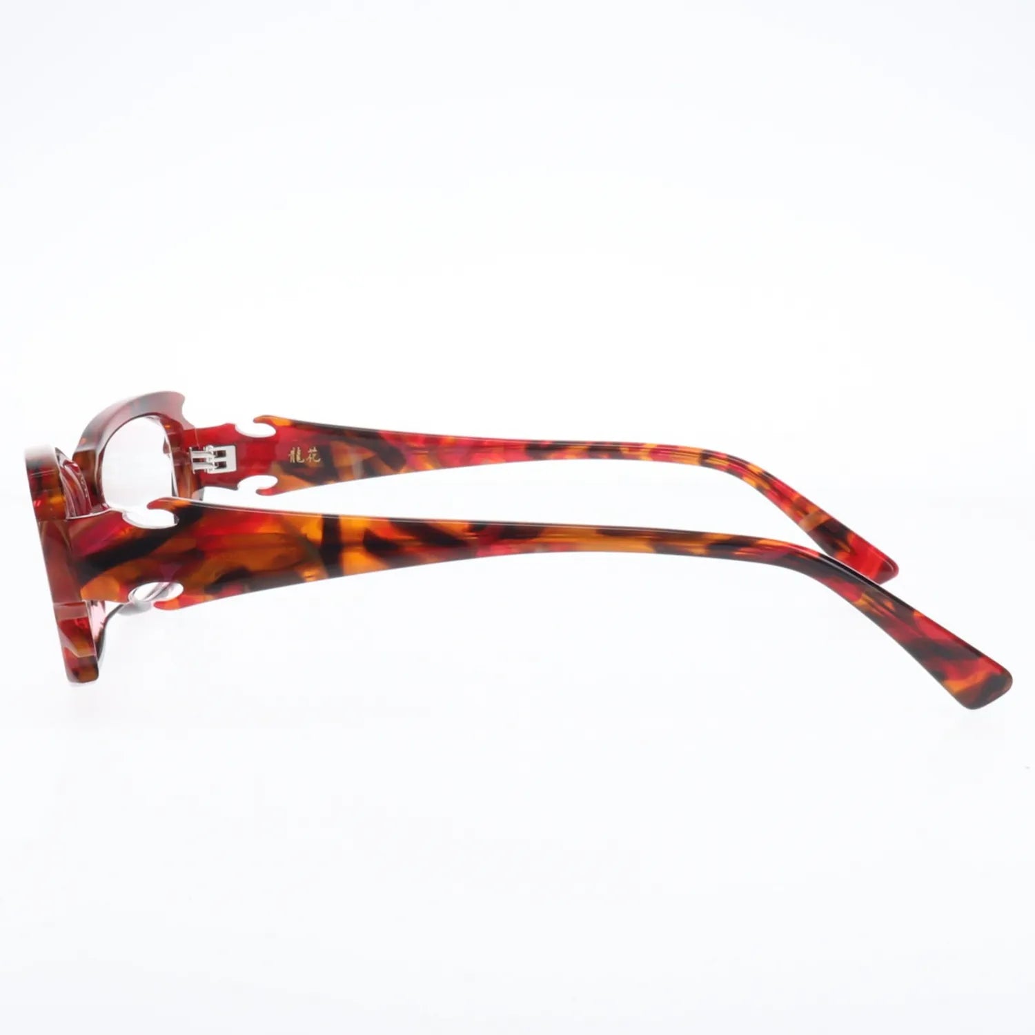 調光レンズの色変化とギミックデザインが創り出す光学的な美しさは、見る角度や光の当たり方によって無限の表情を見せてくれます。この動的な美しさが、調光サングラス「龍花」を芸術作品の域まで押し上げています。