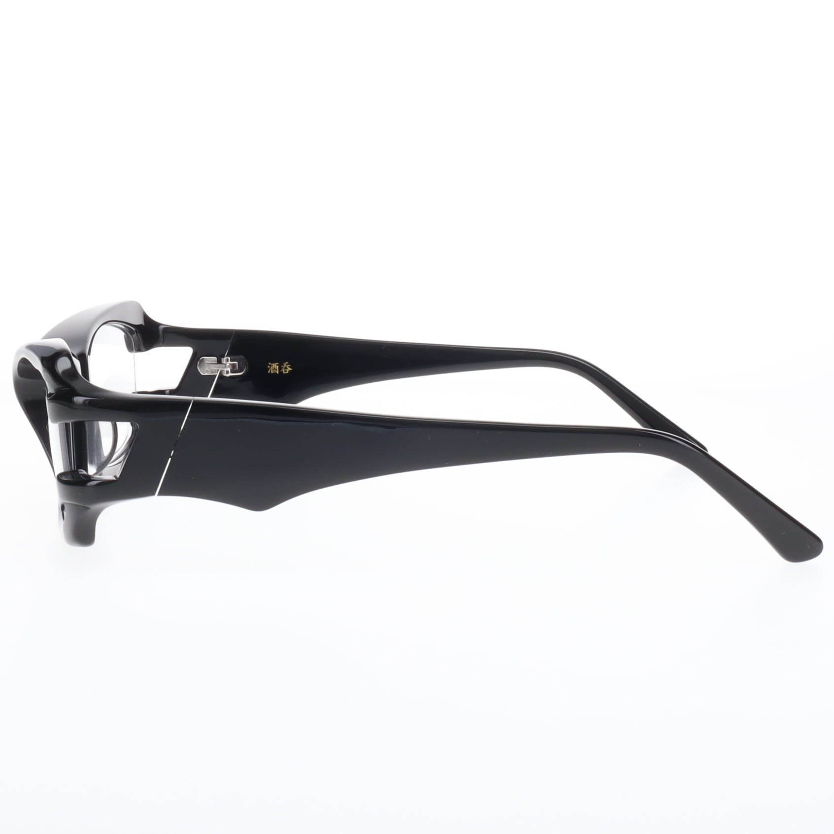 サイドに刻まれた「酒吞」の黄金の銘。伝統的なゴーグル型の系譜を継ぎながら、所有者だけが知る贅沢なディテールに満ちています。