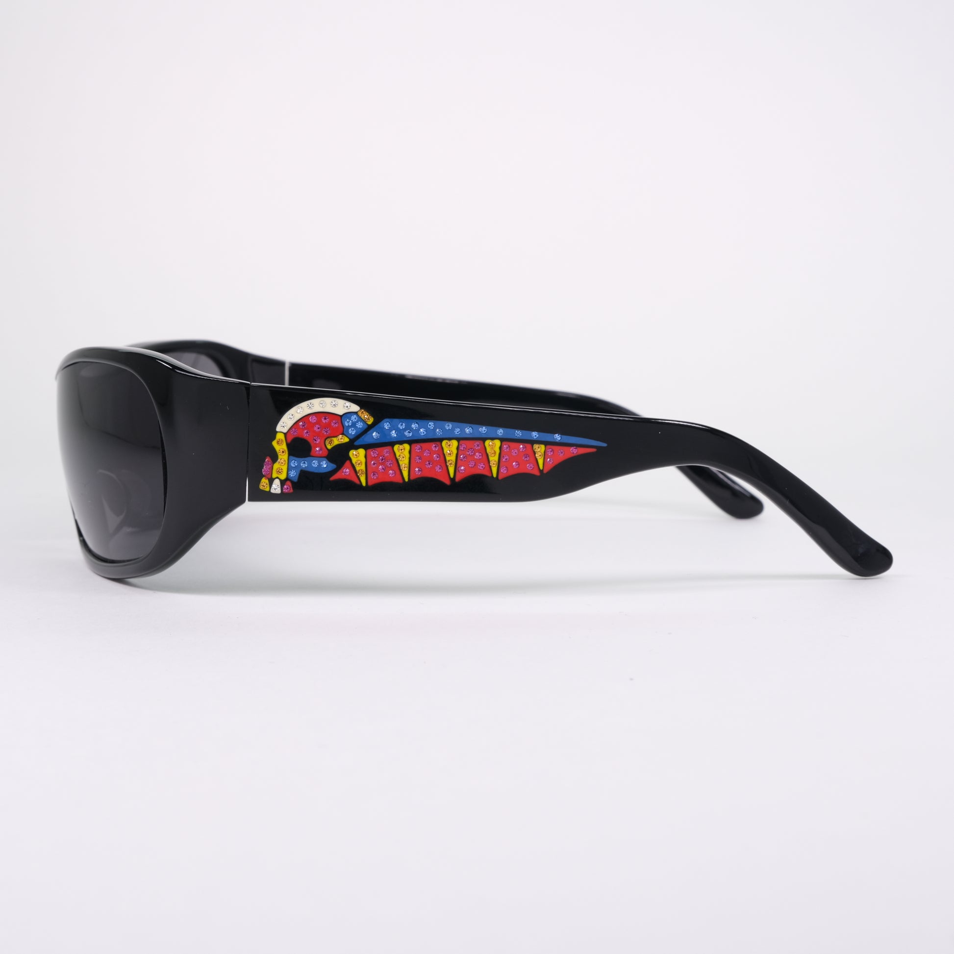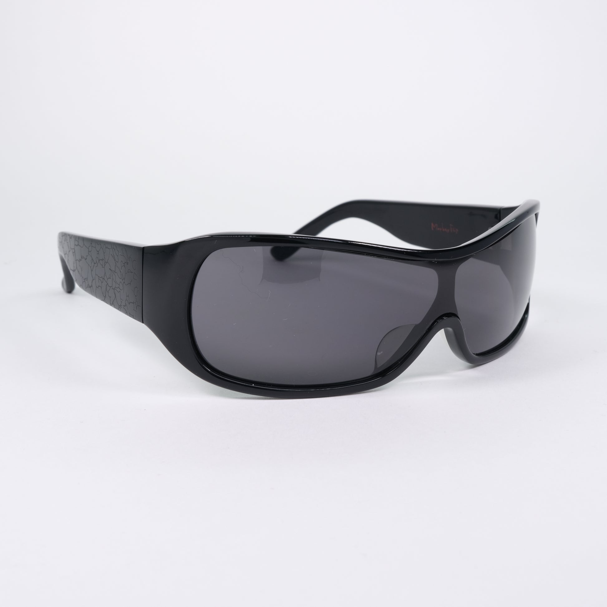 MonkeyFlip 的首款單鏡片眼鏡打造出獨特的外觀。弧形鏡框和兩側不同的鏡腳設計,營造出大膽前衛的造型。