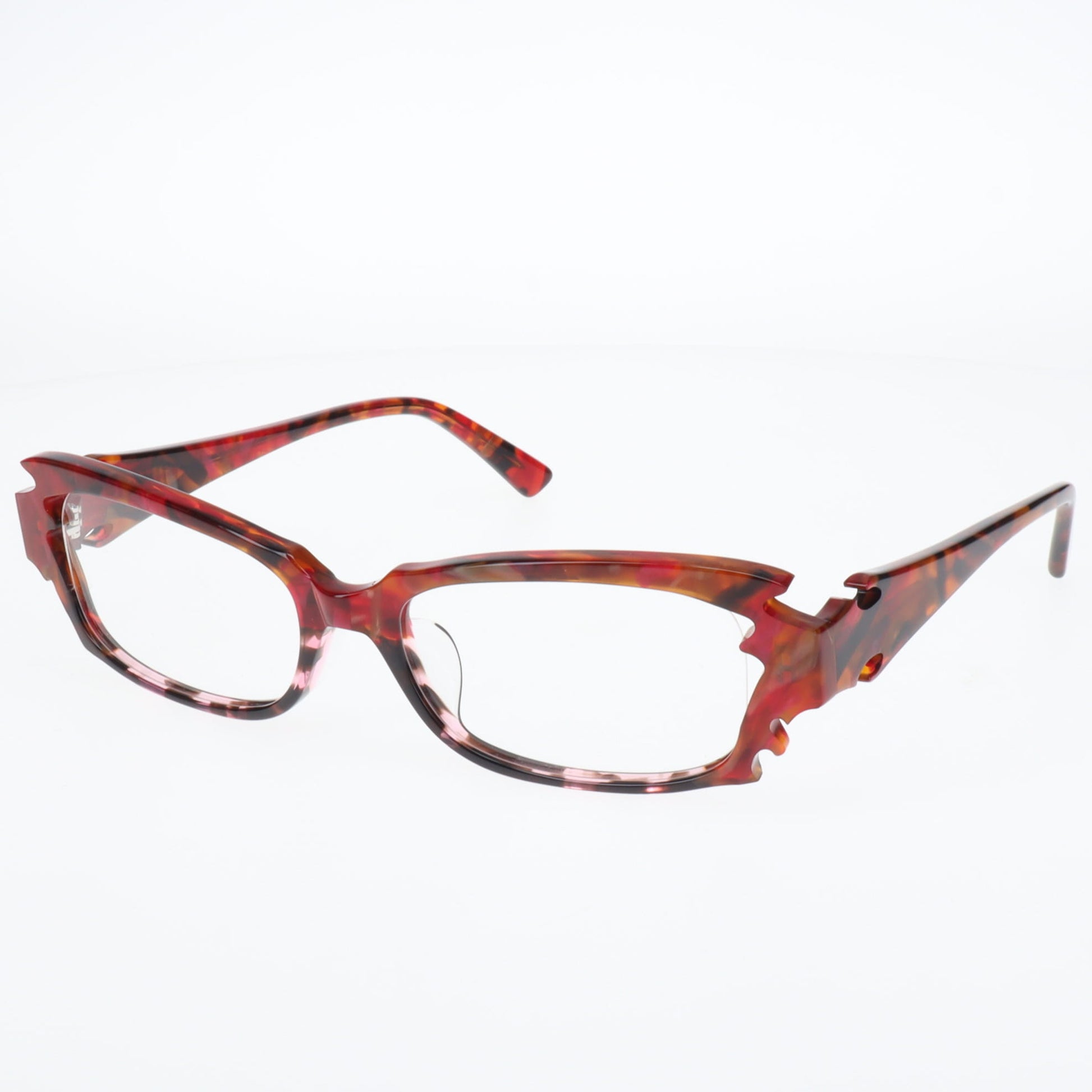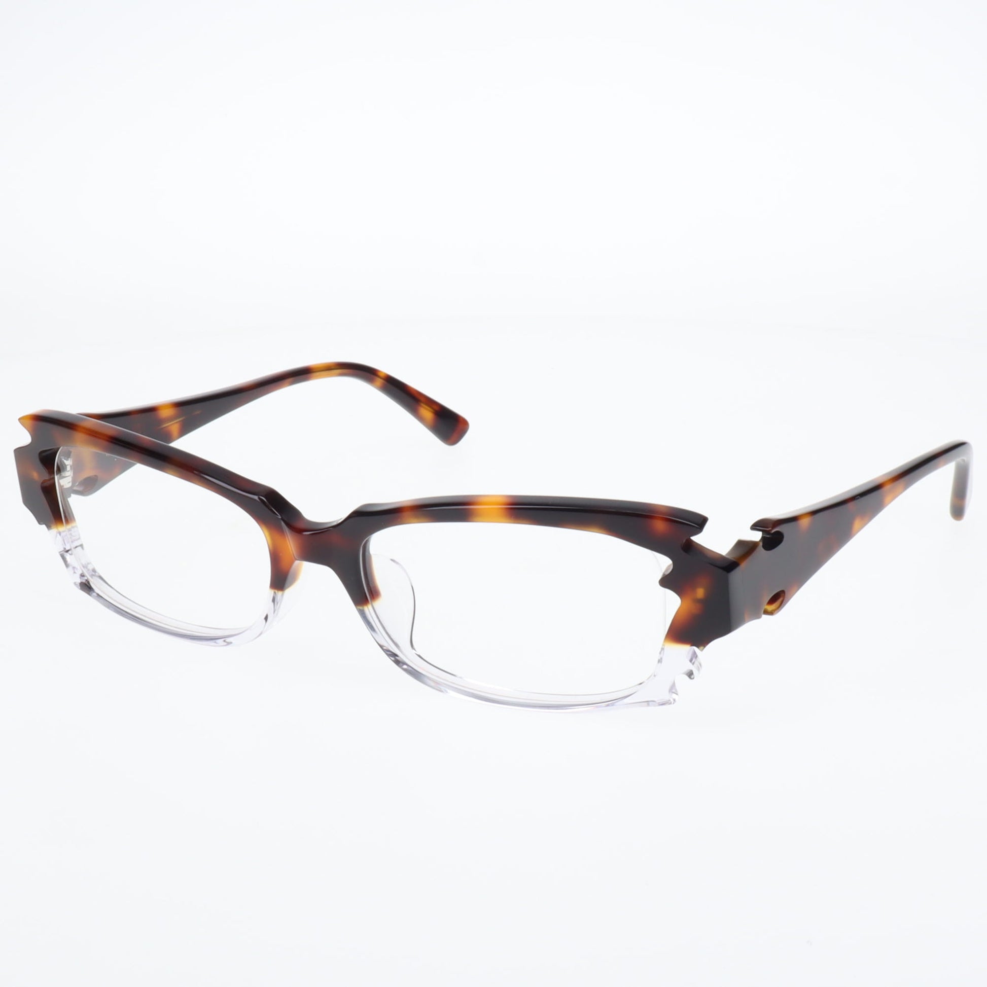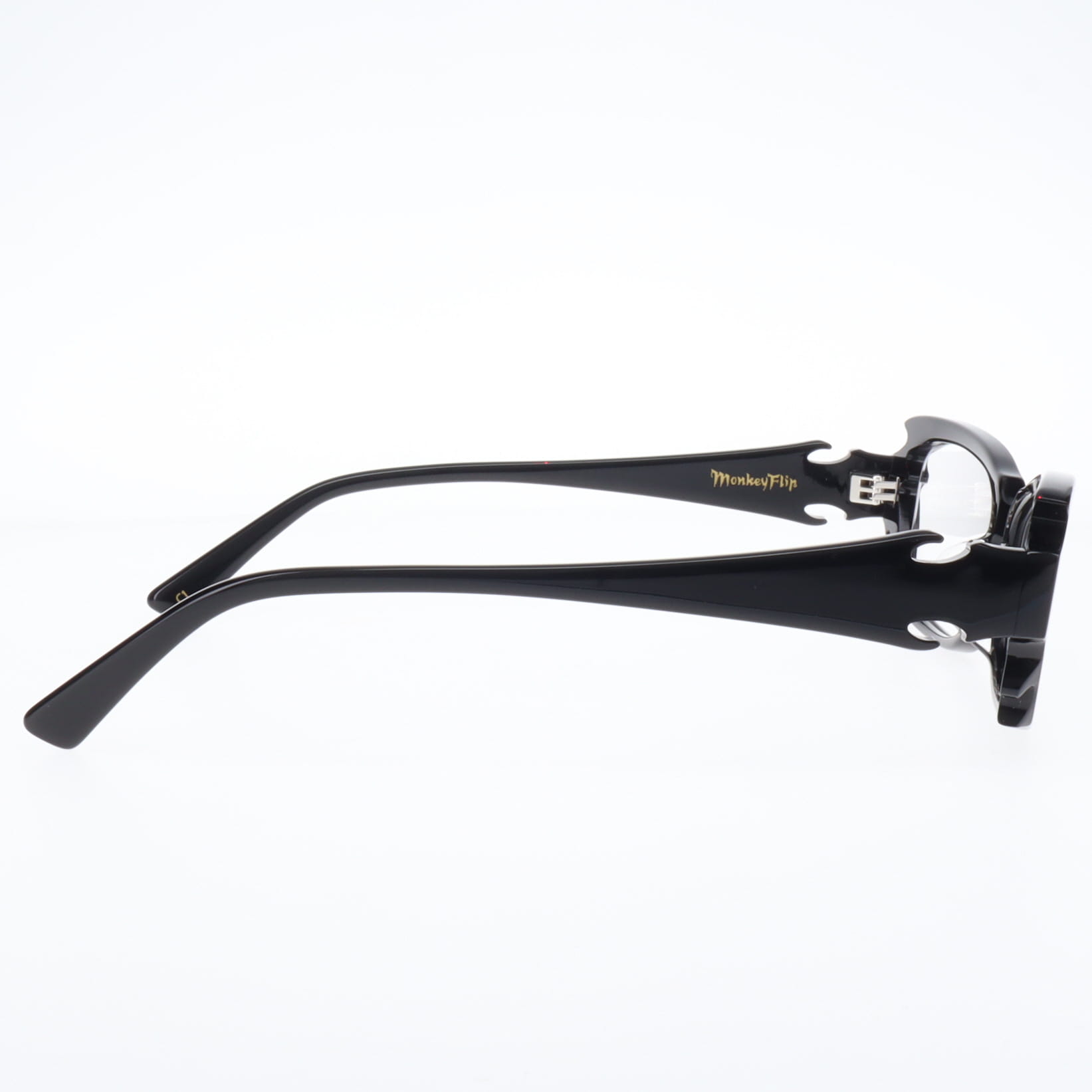 MonkeyFlip是一個受搖滾和刺青等地下文化影響的原創品牌。其獨特之處在於被稱為「噱頭」的裝飾元素,這些元素乍看之下似乎頗具攻擊性,其實蘊含著精湛的工藝和深厚的美學底蘊。 「Ryuuka」這款眼鏡比其他兩款更大膽地運用了這些噱頭,以最純粹的形式詮釋了品牌「趣味十足又酷炫的眼鏡」的理念。